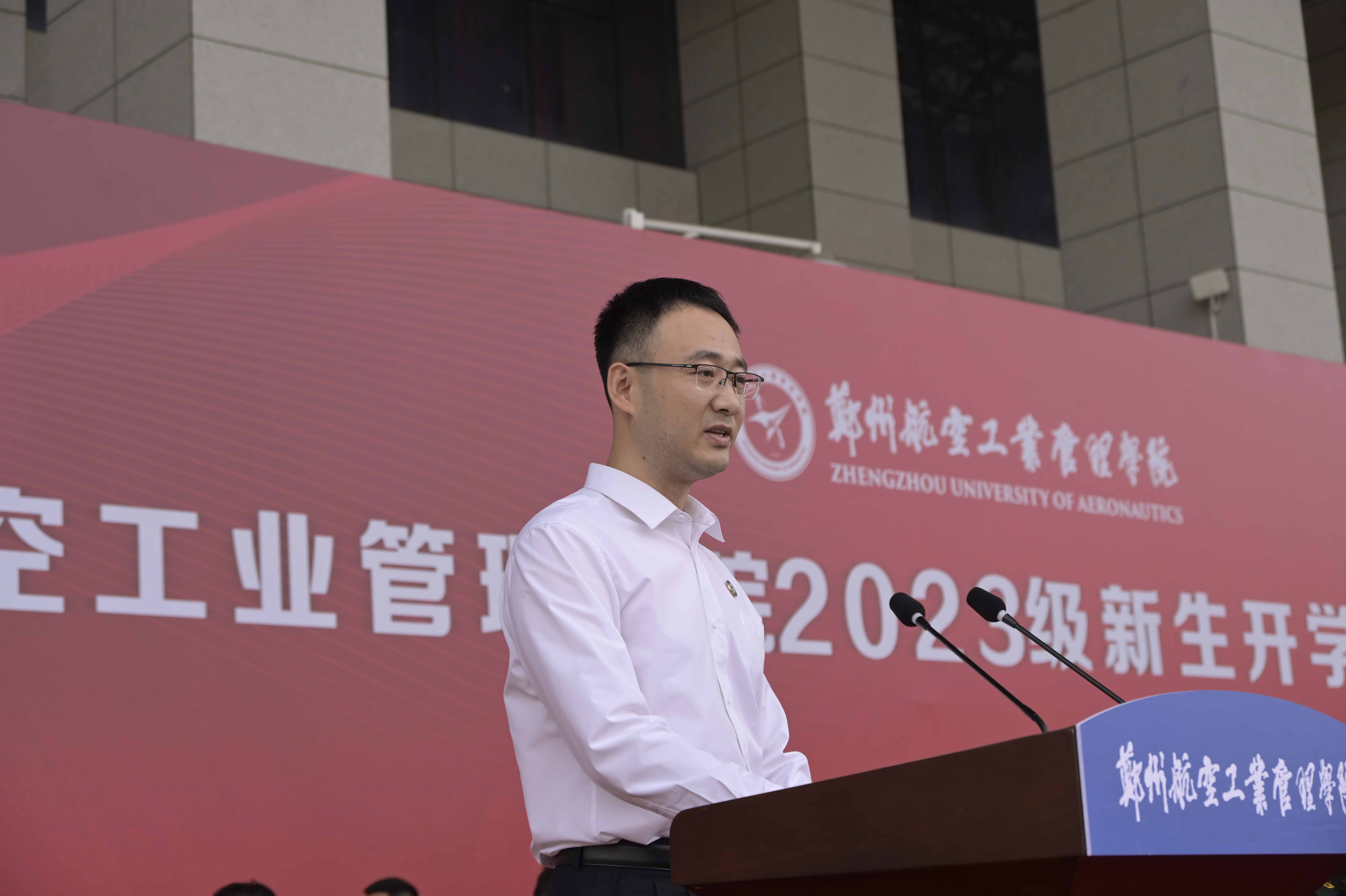 刘代军深情回顾学校74年来波澜壮阔的办学历程,总结学校近年来取得的丰硕办学成果,展望学校筹建高水平航空航天大学的壮美蓝图。刘代军寄语2023级新生,作为新一代郑航人,同学们要知校、爱校、荣校,增强对学校的认同感、归属感和自豪感,将爱国爱校之情转化为实际行动,为实现自己的人生理想而努力奋斗。