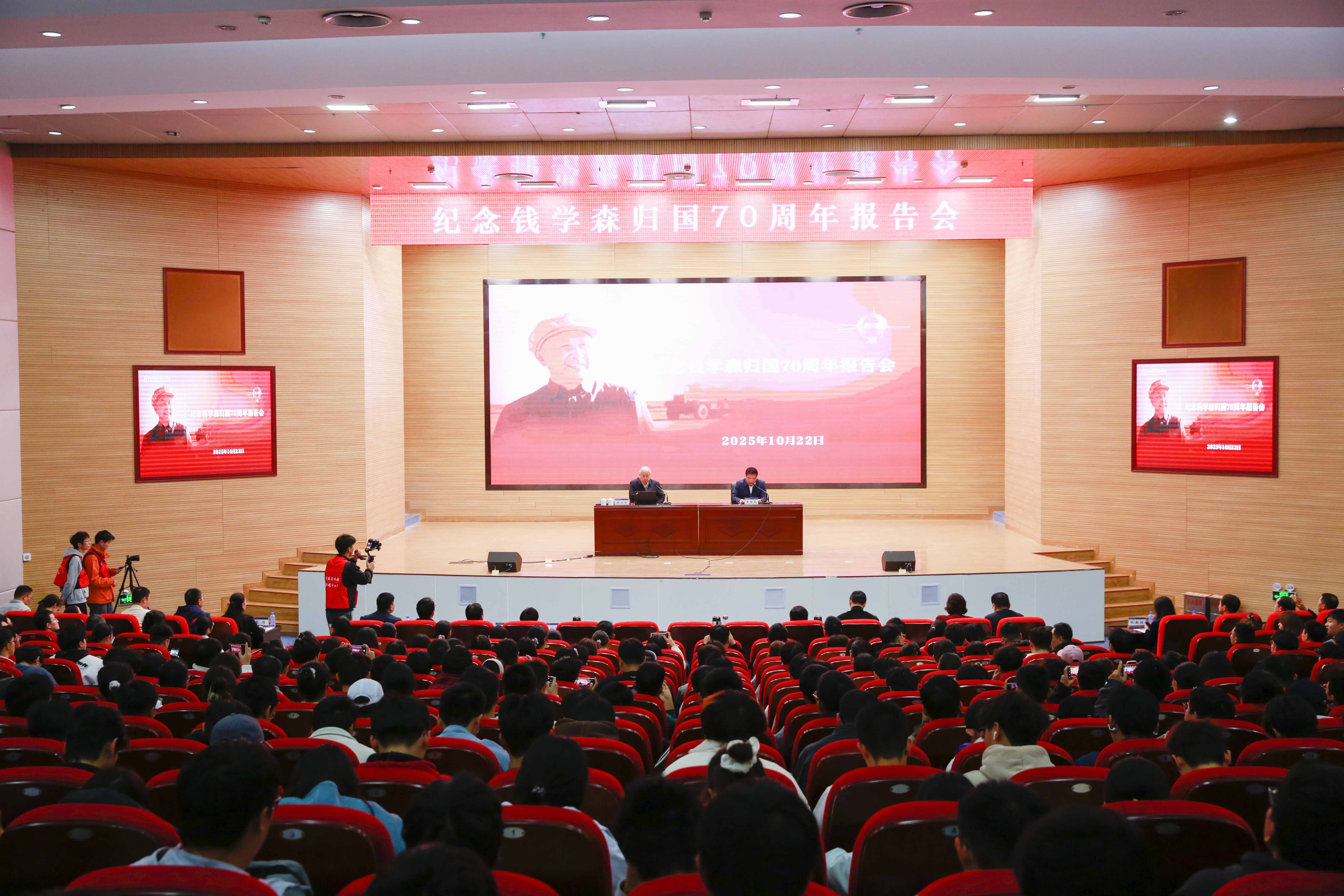 随后,钱永刚以《精神铸就人生》为题为全校师生代表作报告。他以“勤奋、严谨、诚信、创新、担当”等关键词为脉络,通过生动故事和详实资料全面展示了钱学森义无反顾的家国情怀和在科学领域的卓越成就,带领师生在钱学森壮阔的人生航迹中真切地体会钱学森“把国家利益放在首位”的赤子情怀,深刻理解科学家精神。
