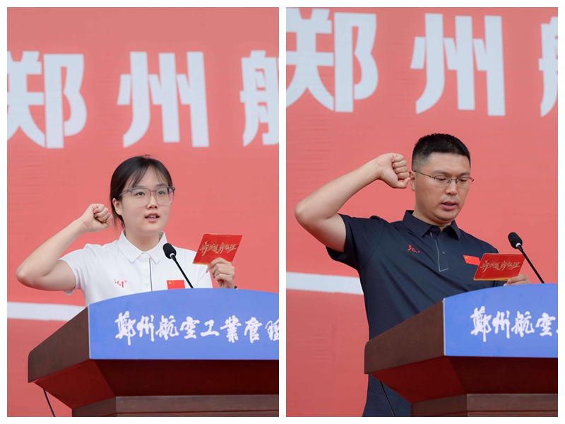 信息管理学院学生吴梦溪、体育部教师李民强分别代表运动员和裁判员宣誓。