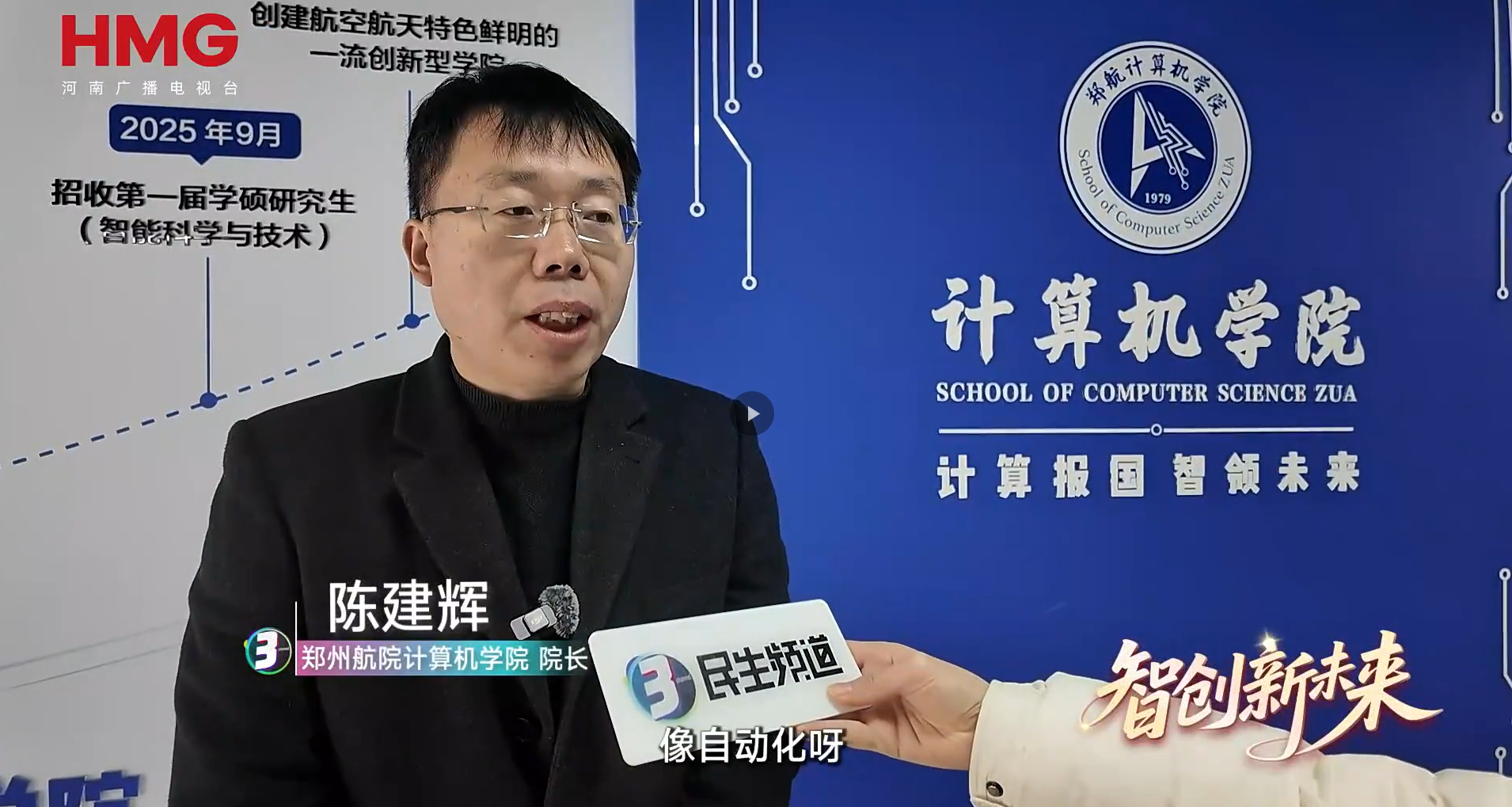 当前,郑州机器人产业呈现蓬勃发展的态势,与之相应的“智造”人才从何而来?河南广播电视台记者走进我校,对计算机学院院长陈建辉进行采访。陈建辉围绕机器人及智能制造领域的发展需求,向记者介绍了我校相关专业的建设及人才培养情况。