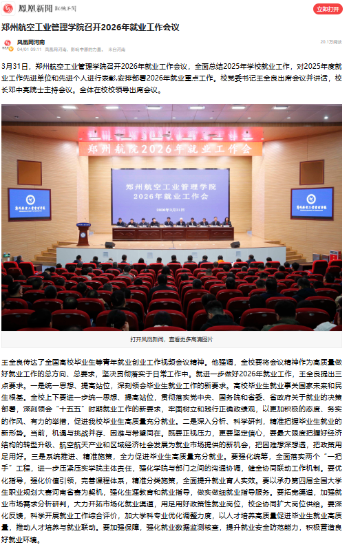 3月31日,我校召开2026年就业工作会议,全面总结2025年学校就业工作,对2025年度就业工作先进单位和先进个人进行表彰,安排部署2026年就业重点工作。校党委书记王全良出席会议并讲话,校长邓中亮院士主持会议。凤凰新闻、大象新闻、河南教育宣传网、顶端新闻、网易新闻进行了报道。