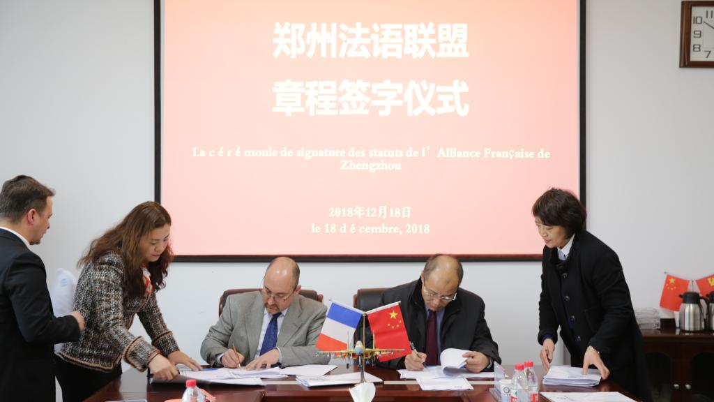 12月18日,我校与法国法语联盟基金会正式签署《郑州法语联盟合作章程》。