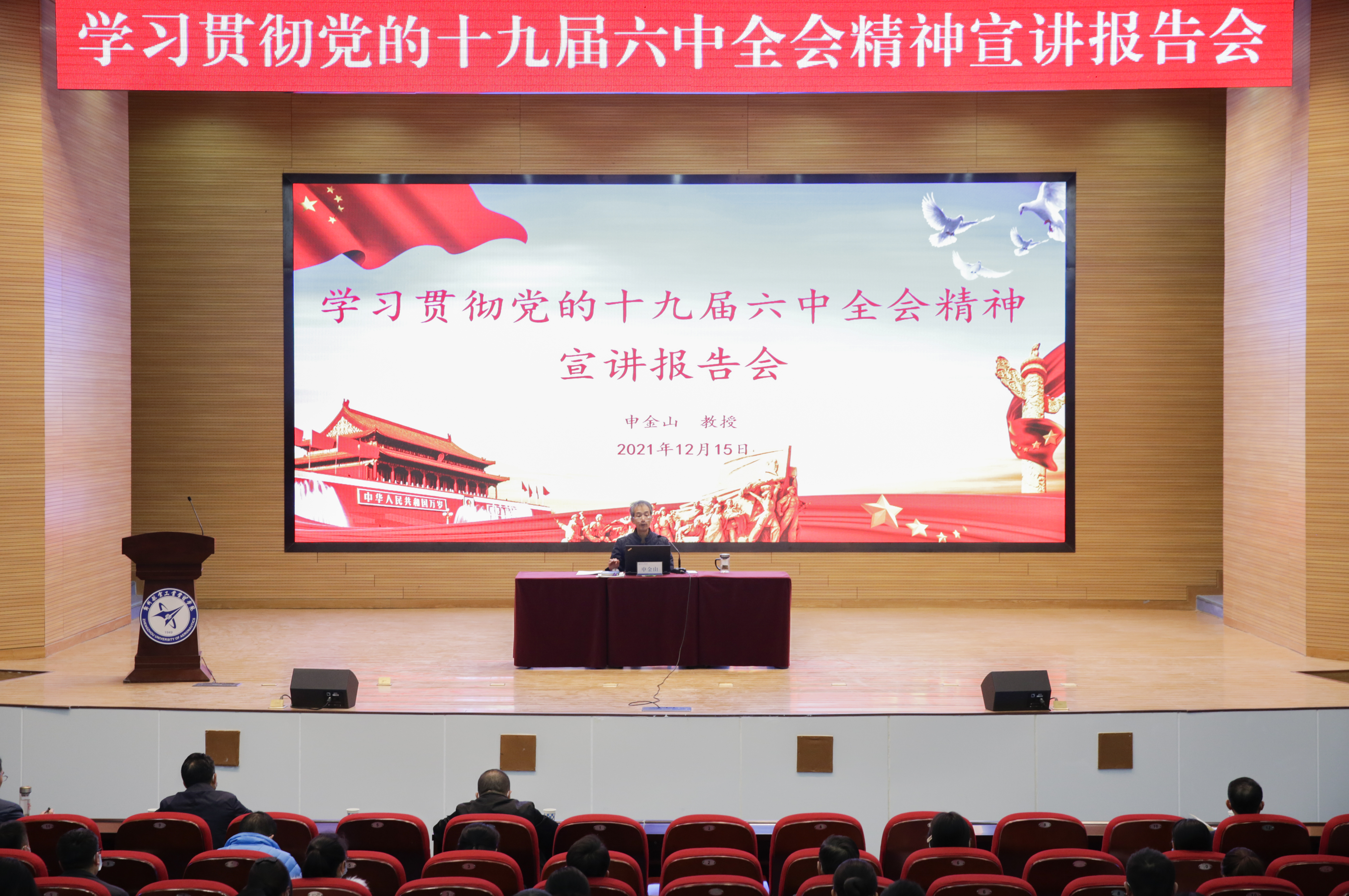 12月9日,党委副书记余传杰在讲授专题思政课时指出,学习贯彻全会精神是当前重中之重的政治任务,必须学深悟透做实。要深学细研百年党史,在深刻体会党的百年奋斗历程中汲取不断前行的信心和力量,筑牢思想根基,涵养忠诚品德,赓续红色血脉。要扛牢立德树人根本任务,在培养担当民族复兴大任的时代新人的任务中践行初心使命,抓住学生这个主体,抓好教师这个关键,抓好体制机制这个根本。要坚守服务中华民族伟大复兴的重要使命,在“两个确保”大局中奋勇争先,办精传统管理类学科,办强航空航天类工科,实施差异化错位发展。要坚持党对学校工作的全面领导,在办学治校的全过程中扛稳管党治党的政治责任,把党的政治建设摆在首位,加强领导班子建设,夯实基层党组织建设,强化思想建设,推动全面从严治党向纵深发展。