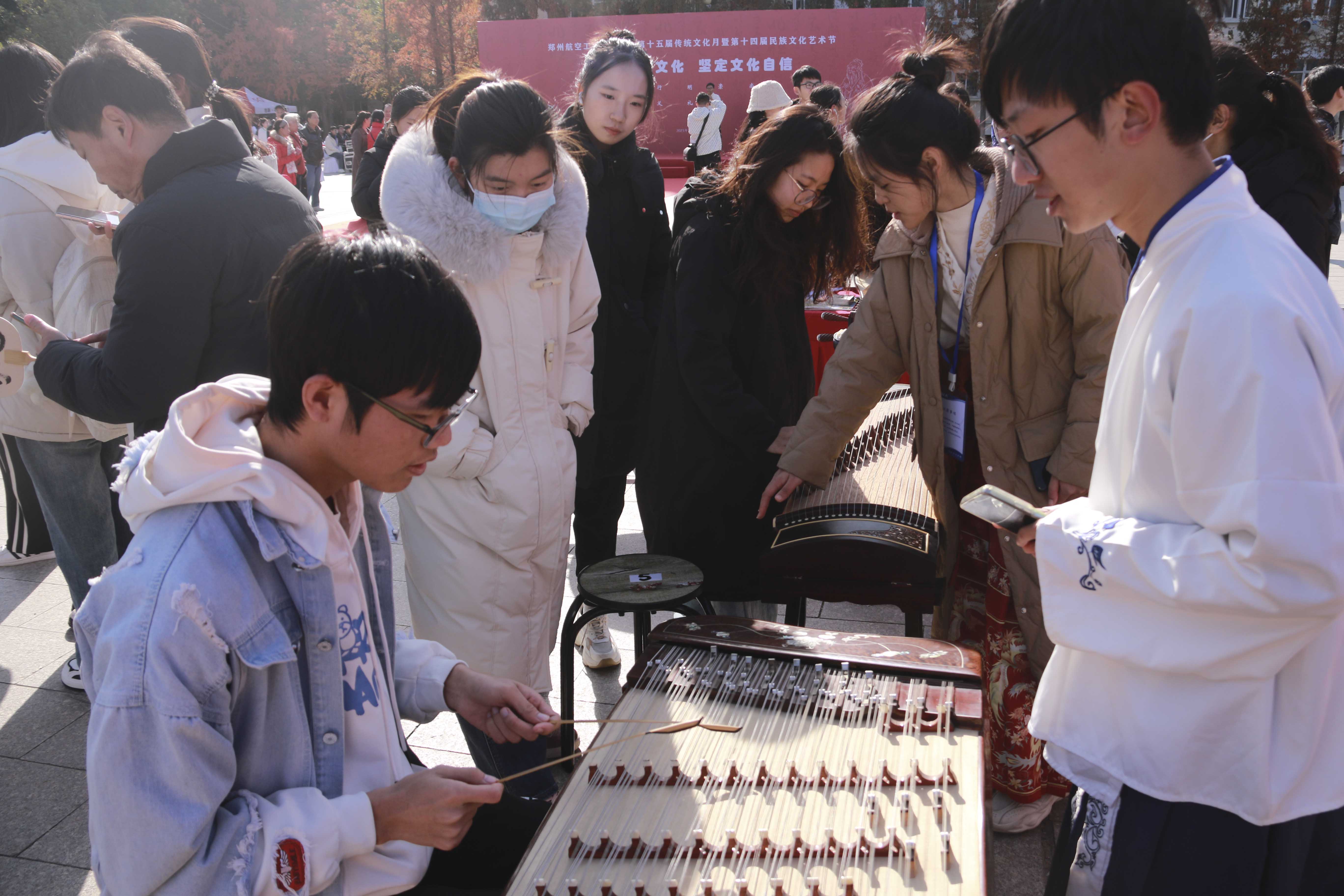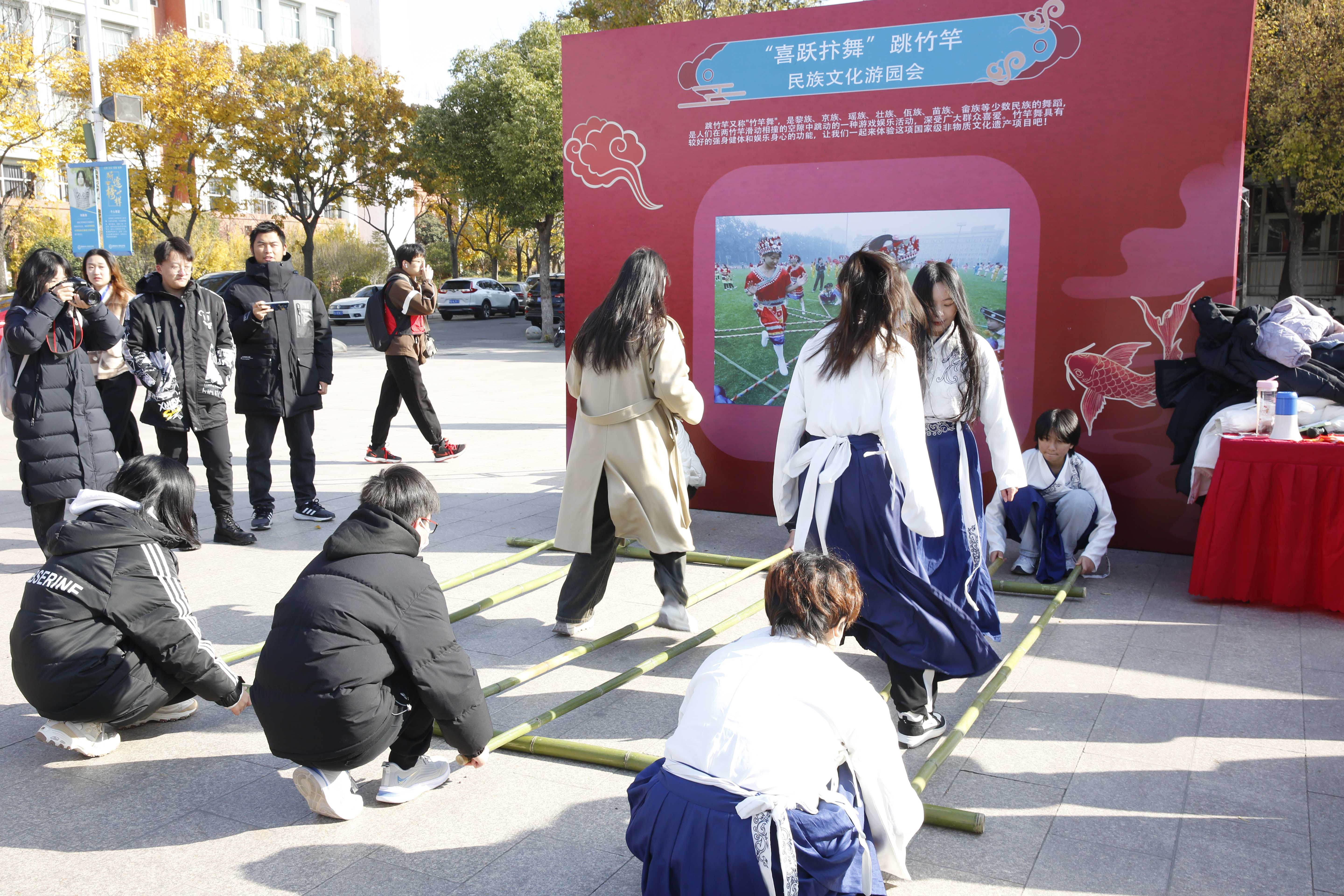 民族文化游园会通过举行“华裳古韵”汉服体验、“说文解字”猜字活动、“丹楹刻桷”民族建筑展、“锦绣交辉”汴绣非遗体验、“拓霜印月”拓印体验、“弹指悠扬”民族乐器体验、“缄囊研香”香包体验、“入吾彀中”套圈体验、“雅歌投壶”趣味活动、“喜跃抃舞”跳竹竿等10个体验项目,为广大师生带来了一场沉浸式的传统文化、民族文化、非遗文化体验,丰富地展现中华优秀传统文化之美。