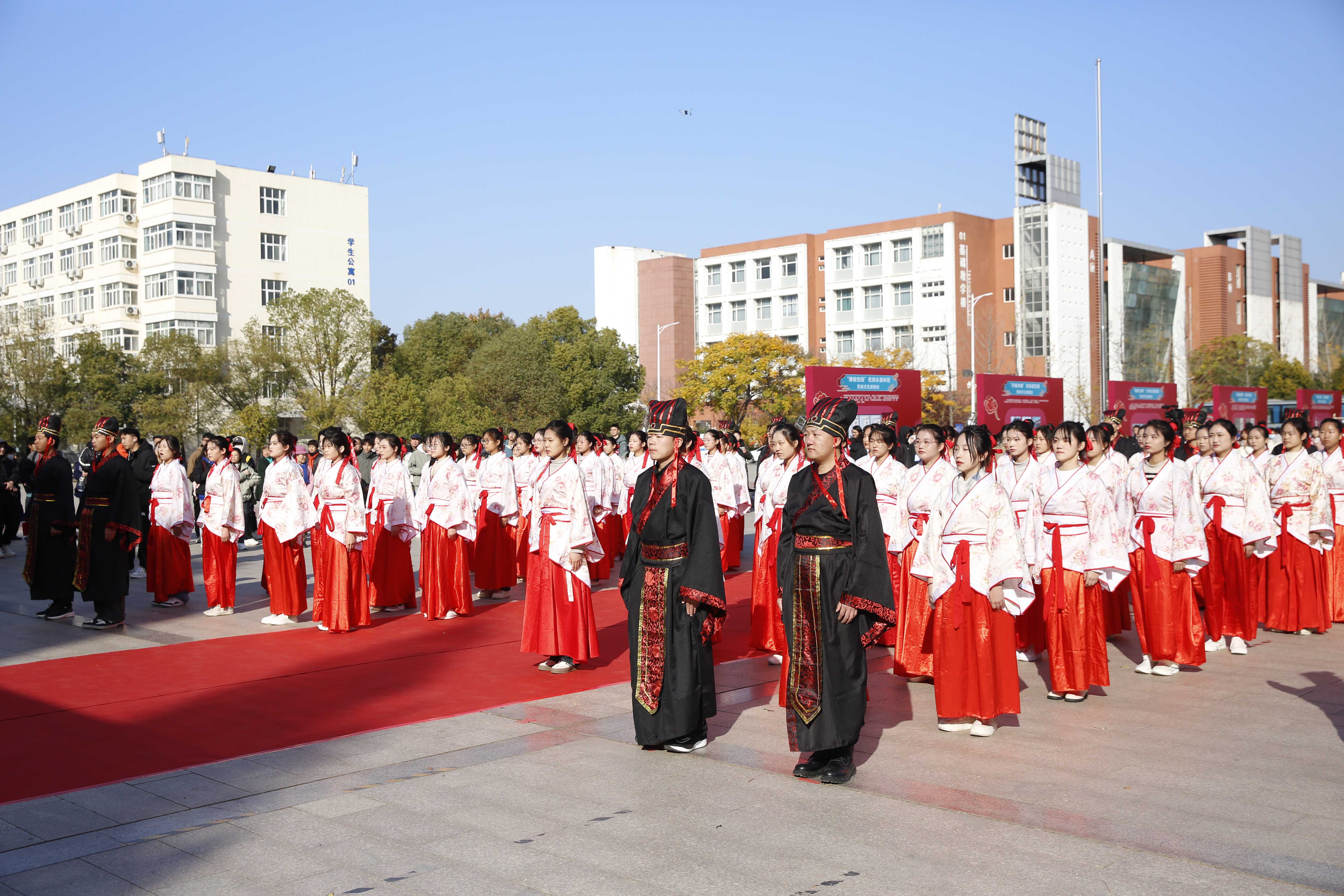 11月24日,我校第十五届传统文化月暨第十四届民族文化艺术节拜师礼、民族文化游园会活动在中心广场举行。党委书记、校长刘代军,党委副书记、工会主席杨培,党委副书记余传杰,副校长李广锋出席活动现场。