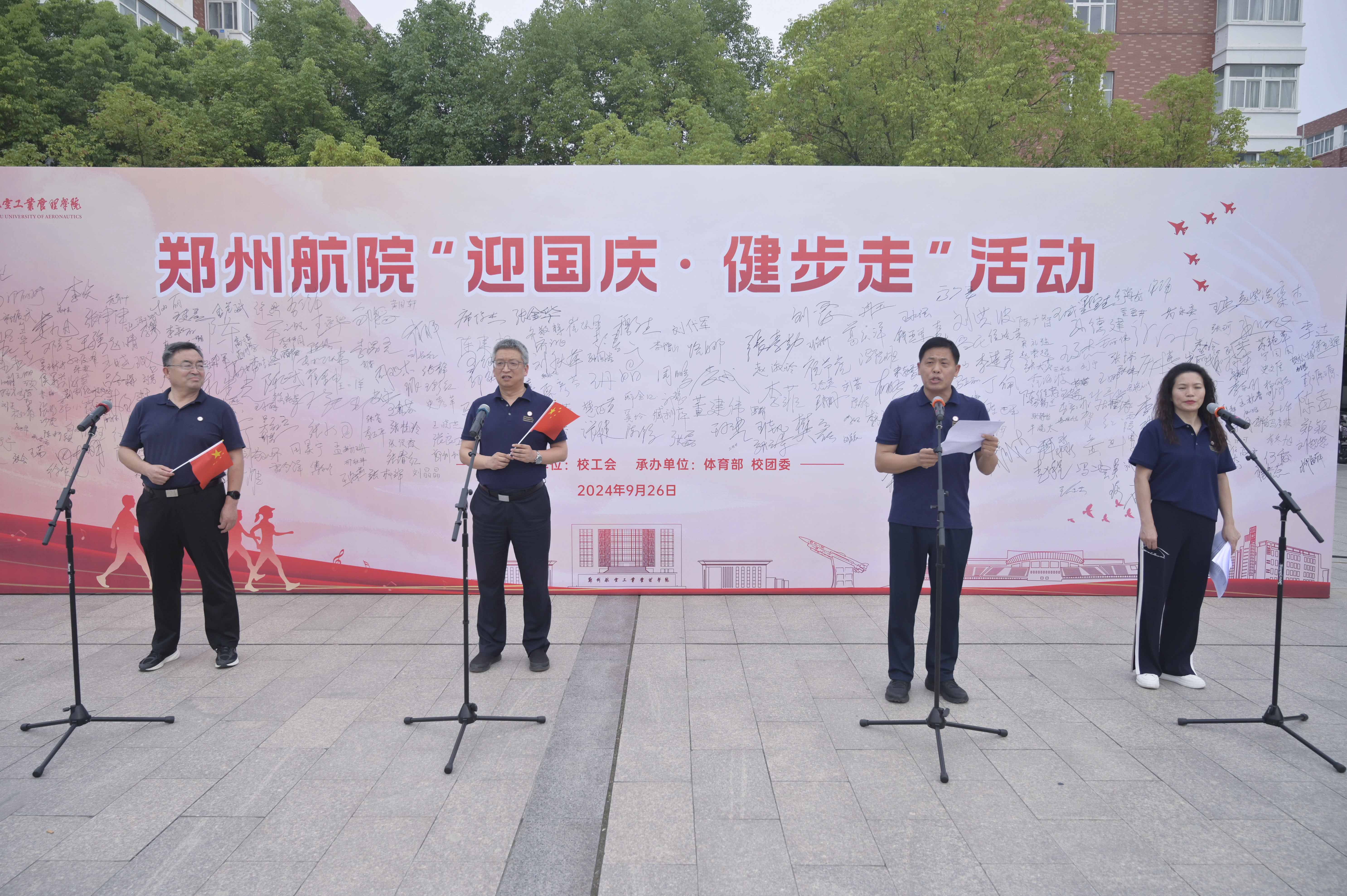 为庆祝中华人民共和国成立75周年,弘扬爱国主义精神,丰富教职工业余生活,9月26日,我校举办“迎国庆 健步走”活动。全体在校校领导出席活动启动仪式,与全校教职工一同参加活动。党委书记、校长刘代军为活动发令。启动仪式由副校长李广锋主持。