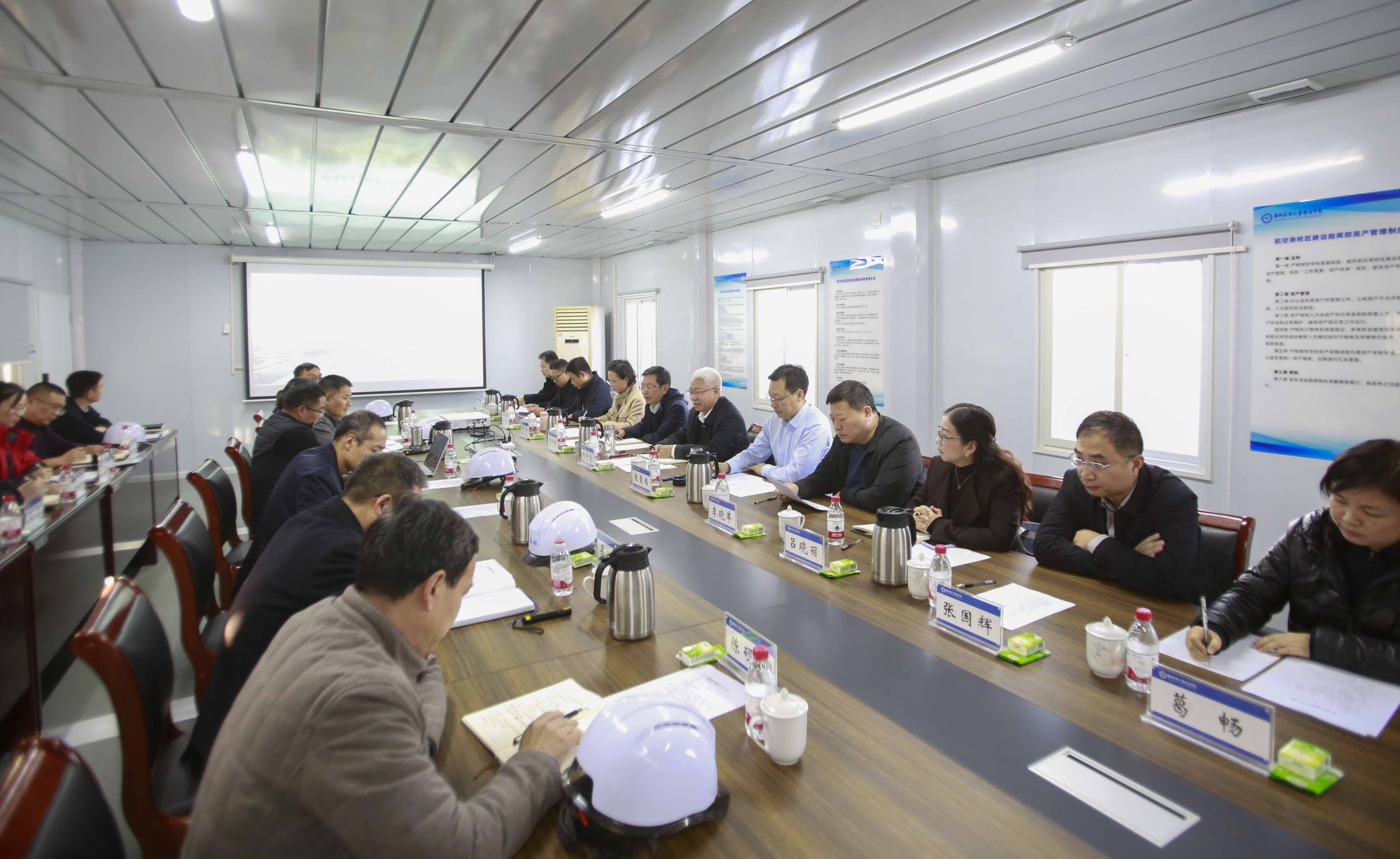 航空港校区建设指挥部相关负责人就航空港校区各标段施工进展、关键节点完成情况及下一阶段工作安排作了系统汇报。