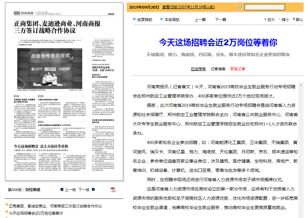 近日,《大河报》、网易、新浪、搜狐等报道我校举办的河南省2019高校毕业生就业服务行动专场招聘会和郑州航院2020届毕业生秋季校园招聘会。